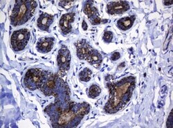 - Immunohistochemical staining of paraffin-embedded human breast tissue within the normal limits using anti-Hsp60 (HSPD1) mouse monoclonal antibody. (Heat-induced epitope retrieval by 10mM citric buffer, pH6.0, 120°C for 3min, TA800772)