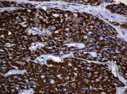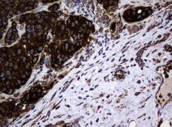 - Immunohistochemical staining of paraffin-embedded Adenocarcinoma of Human breast tissue using anti-Hsp60 (HSPD1) mouse monoclonal antibody. (Heat-induced epitope retrieval by 10mM citric buffer, pH6.0, 120°C for 3min, TA800772)