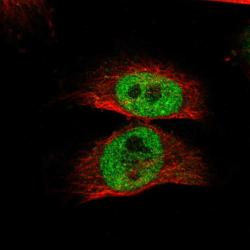 - Immunofluorescent staining of human cell line U-251 MG shows localization to nucleoplasm.