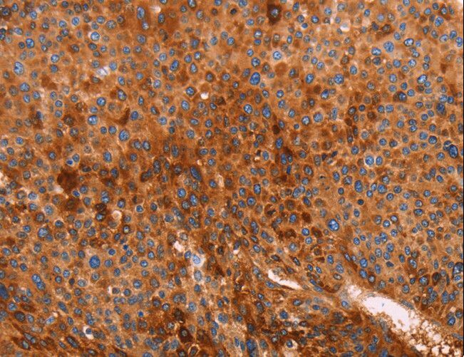 - Immunohistochemistry of paraffin-embedded Human liver cancer using GC Polyclonal Antibody at dilution of 1:40.