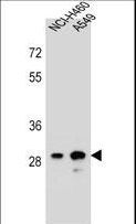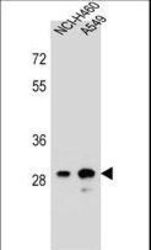 - DHRS4L1 Antibody western blot of NCI-H460,A549 cell line lysates (35 ug/lane). The DHRS4L1 antibody detected the DHRS4L1 protein (arrow).