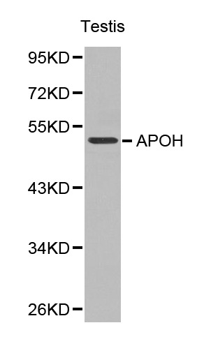 - WesternBlot (WB) analysis of APOH pAb in extracts from mouse testis tissue.