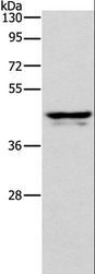 - Western blot analysis of Human plasma tissue, using APOL1 Polyclonal Antibody at dilution of 1:400.