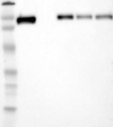- Western blot analysis of antibody specificity using a routine panel composed of IgG/HSA-depleted human plasma and protein lysates from selected human tissues and cell lines.