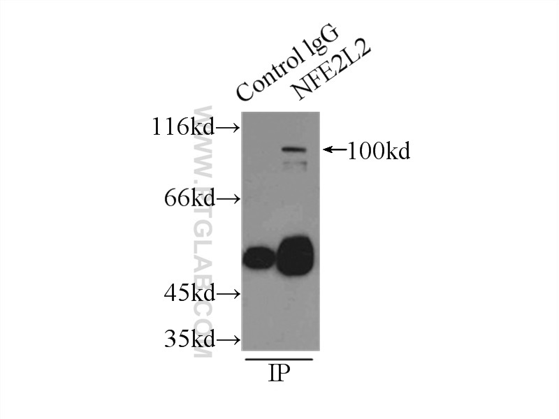 - IP Result of anti-NRF2, NFE2L2 (IP:16396-1-AP, 3ug; Detection:16396-1-AP 1:300) with mouse kidney tissue lysate 7000ug.