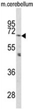 - Western blot analysis of PCSK2 Antibody (N-term) (AP17624PU-N) in mouse cerebellum tissue lysates (35ug/lane). PCSK2 (arrow) was detected using the purified Pab.