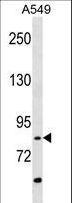 - ANKRD3 Antibody (Q817) western blot of A549 cell line lysates (35 ug/lane). The ANKRD3 antibody detected the ANKRD3 protein (arrow).