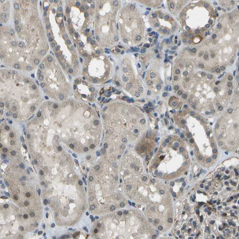 - Immunohistochemical staining of CTIF in human kidney using a CTIF Polyclonal Antibody (Product # PA5-53509) shows cytoplasmic positivity in cells in tubules.