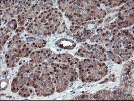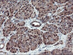 - Immunohistochemical staining of paraffin-embedded human pancreas tissue within the normal limits using anti-SERPINB1 mouse monoclonal antibody. (Heat-induced epitope retrieval by 10mM citric buffer, pH6.0, 100°C for 10min, TA800078)
