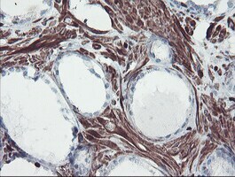 - Immunohistochemical staining of paraffin-embedded human breast tissue within the normal limits using anti-SERPINB1 mouse monoclonal antibody. (Heat-induced epitope retrieval by 10mM citric buffer, pH6.0, 100°C for 10min, TA800078)