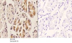 - Immunohistochemistry validation of CMKLR1 using Anti-ChemR23 (R249) CMKLR1 Antibody (A02960-1). Immunohistochemistry (IHC) analyzes of ChemR23 (R249) pAb in paraffin-embedded human kidney carcinoma tissue at 1:50.showing cytoplasmic and nucleus staining. Negative control (the right)Using PBS instead of primary antibody