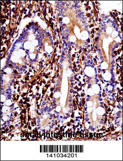 - Vimentin Antibody immunohistochemistry analysis in formalin fixed and paraffin embedded human small intestine tissue followed by peroxidase conjugation of the secondary antibody and DAB staining.This data demonstrates the use of Vimentin Antibody for immunohistochemistry. Clinical relevance has not been evaluated.