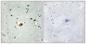- Immunohistochemistry analysis of paraffin-embedded human brain tissue using SOX8/9/17/18 antibody.The picture on the right is treated with the synthesized peptide.