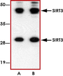 - SIRT3 antibody was raised against a 17 amino acid synthetic peptide near the center of human SIRT3