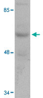 - Western blot analysis of INSM1 in rat thymus tissue lysate with INSM1 polyclonal antibody (Cat # PAB16838) at 1 ug/mL .