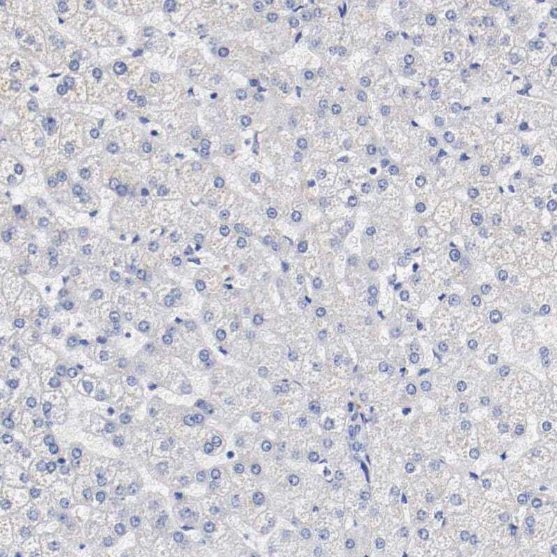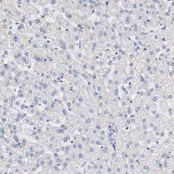 - Immunohistochemical analysis of FGFBP1 in human liver using FGFBP1 Polyclonal Antibody (Product # PA5-52075) shows no positivity in hepatocytes as expected.