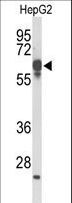 - Western blot of FBXL5 Antibody in HepG2 cell line lysates (35 ug/lane). FBXL5 (arrow) was detected using the purified antibody;