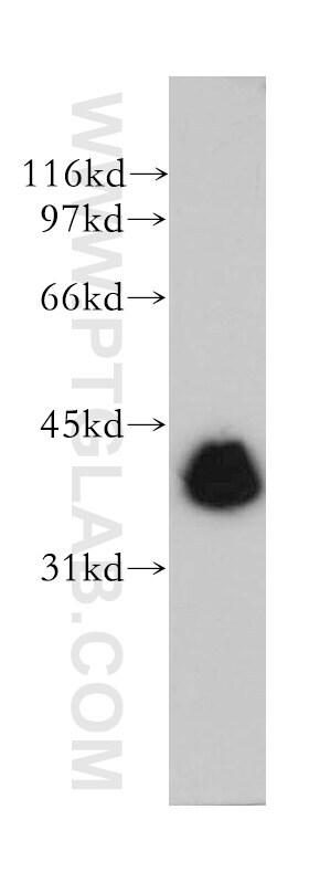 - Human heart tissue were subjected to SDS PAGE followed by western blot with 12521-1-AP (TMOD3 antibody) at dilution of 1:500 incubated at room temperature for 1.5 hours.