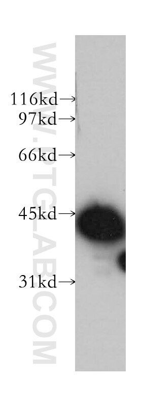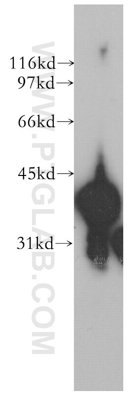 - Human lung tissue were subjected to SDS PAGE followed by western blot with 12521-1-AP (TMOD3 antibody) at dilution of 1:500 incubated at room temperature for 1.5 hours.