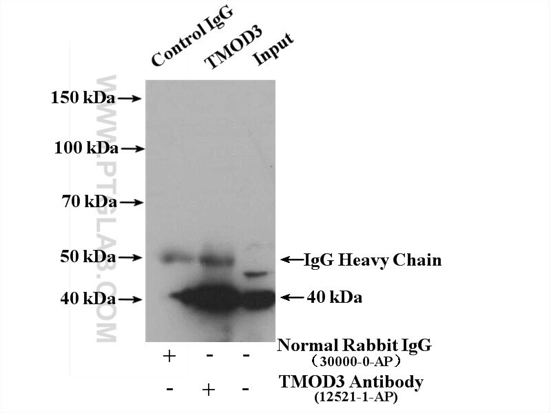 - IP result of anti-TMOD3 (IP:12521-1-AP, 4ug; Detection:12521-1-AP 1:700) with Jurkat cells lysate 4000 ug.