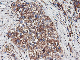 - IHC of paraffin-embedded Carcinoma of Human bladder tissue using anti-ENPEP mouse monoclonal antibody. (Heat-induced epitope retrieval by 10mM citric buffer, pH6.0, 100C for 10min).