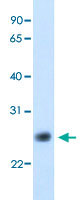 - Western Blot analysis of human fetal kidney tissue lysate with GGTLC1 polyclonal antibody (Cat # PAB30102) at 5 ug/mL working concentration.