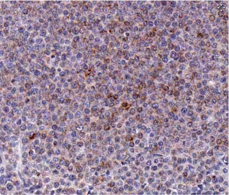 - Bouin-fixed, paraffin-embedded Chronic Lymphocytic Leukemia (CLL) xenograft stained with Noxa antibody (1:2000), peroxidase-conjμgate and DAB chromogen. Staining for 2 hr at RT was used.