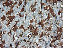 - IHC of paraffin-embedded Human liver tissue using anti-PARVA mouse monoclonal antibody.